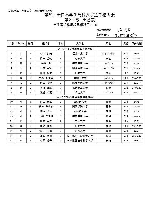 【1日目速報】令和5年度全日本学生馬術選手権大会及び女子選手権大会が開幕しました! 2023年12月09日 R5選手権_第一回戦結果表 R5女子選手権_第一回戦結果表 R5選手権 2回戦出番表 R5女子選手権 2回戦出番表 R5選手権_第二回戦結果表 R5女子選手権_第二回戦結果表 令和5選手権 10-18位結果表 令和5選手権 19-32位結果表 令和5女子選手権 10-18位結果表 令和5女子選手権 19-32位結果表 前へ お知らせTOPへ 次へ