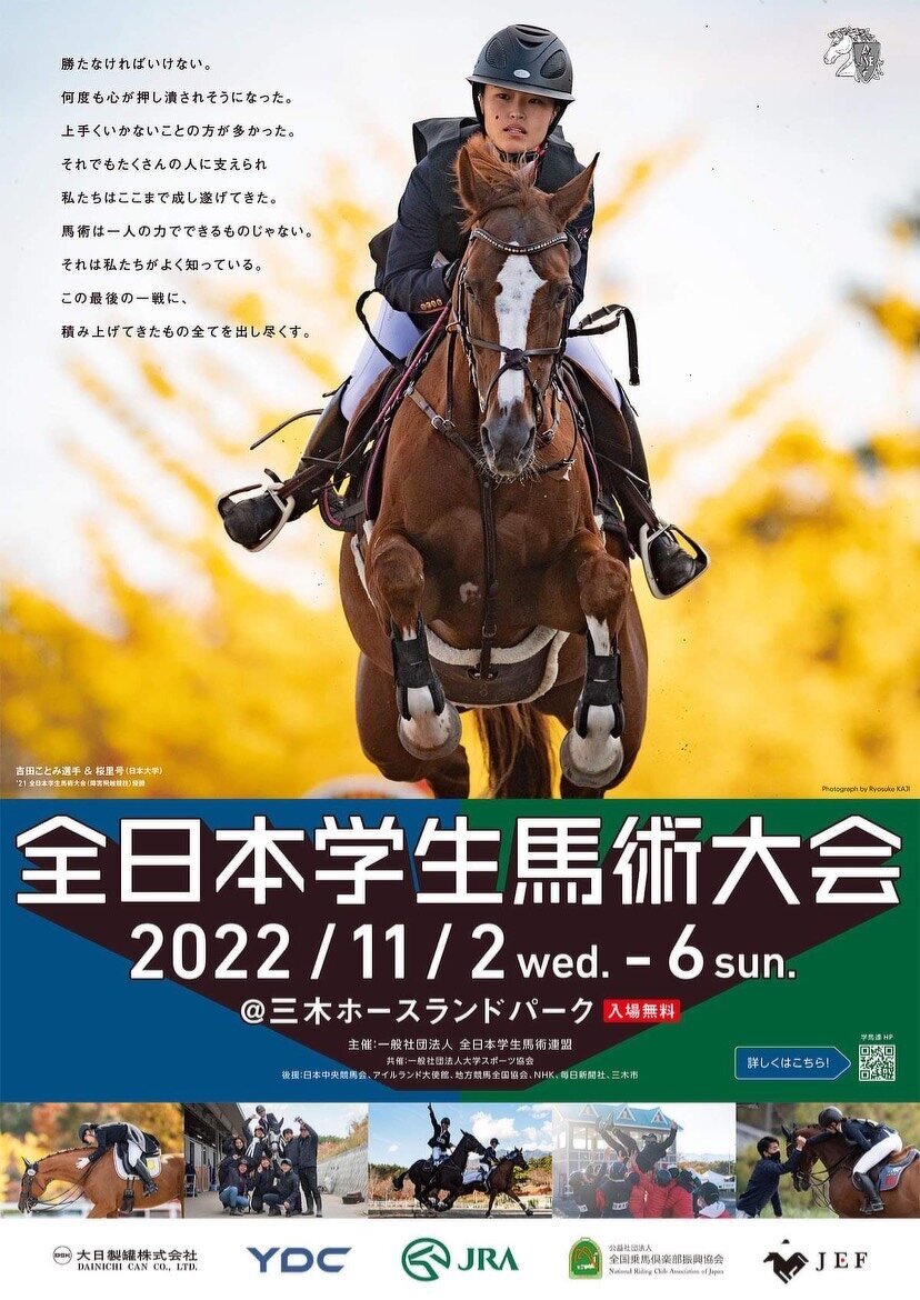 全日本学生馬術大会2022まで残り30日となりました。皆さまお誘いあわせの上、ご来場お待ちしております。